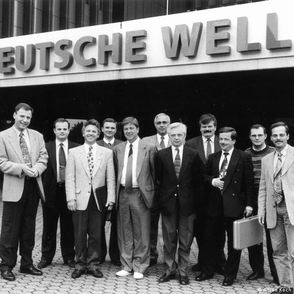 "I have fond memories working at the Welle in the '90s. The newsroom was changing rapidly: reading before a microphone gave way to live reports and live broadcasts, with the fresh arrival of relatively young journalists from the new Russia," says economist Andrey Gurkov, one of the "veterans" of the newsroom. "We didn't think of ourselves as emigrants; rather, we saw ourselves as bridge-builders, contributing to the rapprochement between Russia, the post-Soviet region, and Europe, the West, through in-depth reporting on the epochal scale of change in politics that was underway."
